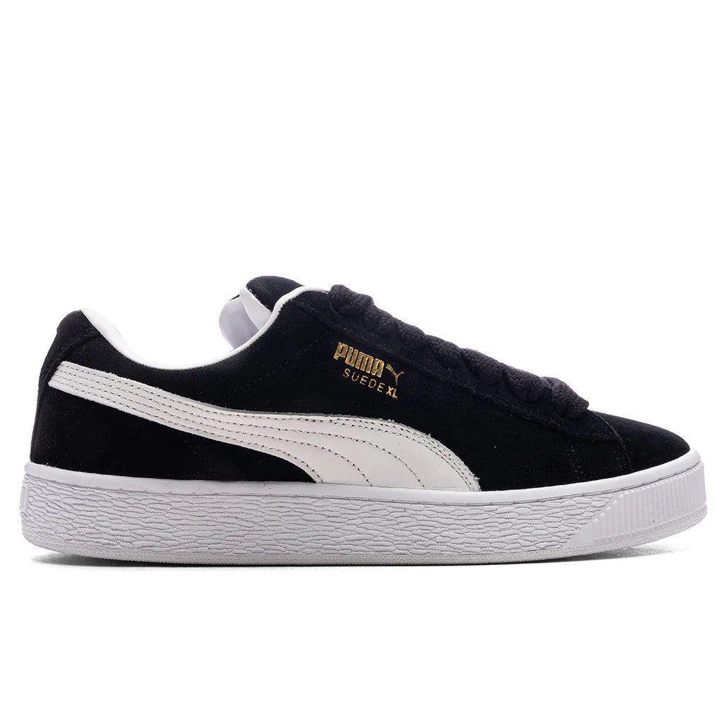 The PUMA Suede XL showcases a premium suede upper paired with leather overlays. The standout feature is its chunky, oversized silhouette. The chunky tongue and cotton laces complement the design, while the suede PUMA Formstrip and branded details complete the shoe’s signature look. The rubber midsole and outsole ensure durability and a reliable grip.